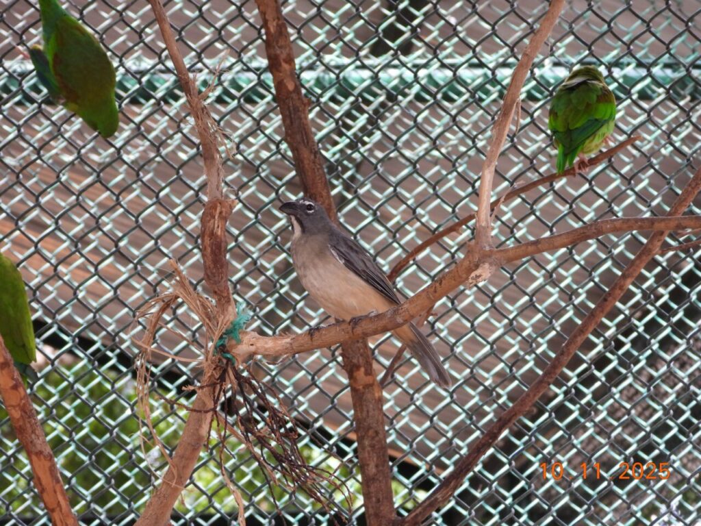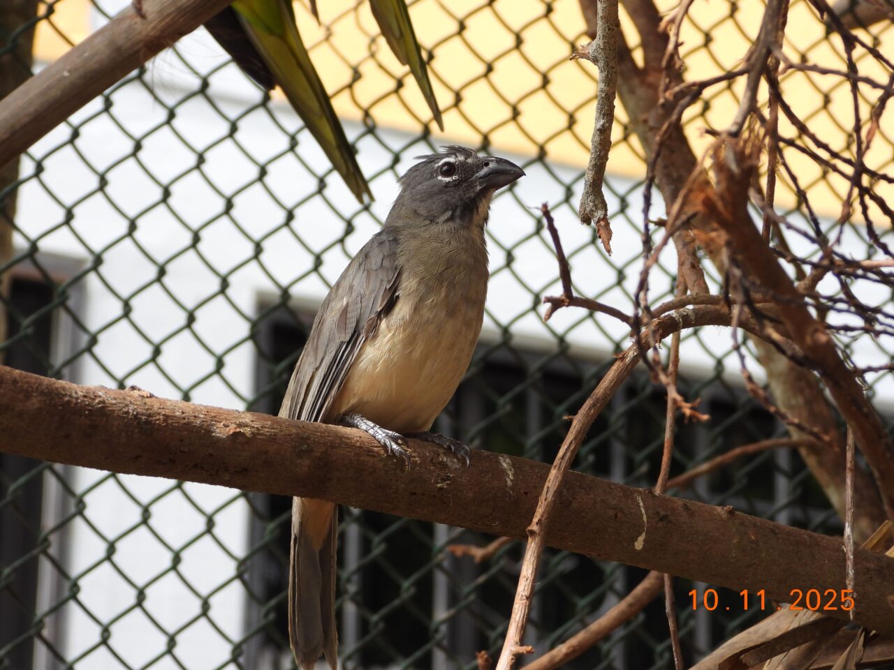 • Aspectos distintivos: Mide aproximadamente 21 cm de longitud y pesa cerca de 58 gramos. Su plumaje dorsal es de un tono gris, el cual contrasta con sus partes ventrales de color gris y canela. La característica distintiva más notable es su cabeza gris, y presenta una ralla blanquecina muy visible sobre el ojo (ceja), y una garganta blanco hueso, orillada de negruzco. Posee un pico negro y robusto, adecuado para su dieta de semillas y frutos. Su canto es sonoro y musical.