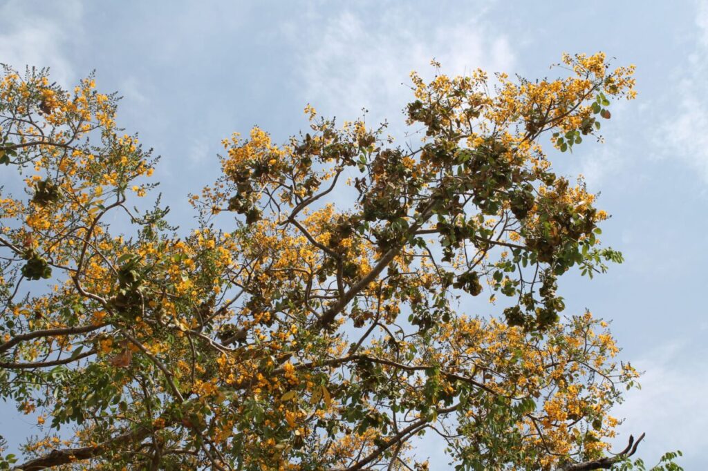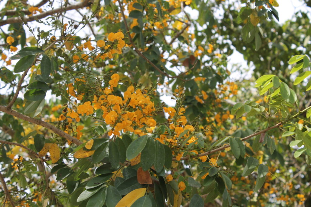 Propiedades foliares: Hojas compuestas imparipinnadas con 7 a 15 folíolos ovados a lanceolados, de margen entero, textura coriácea, glabras y de color verde oscuro en el haz.