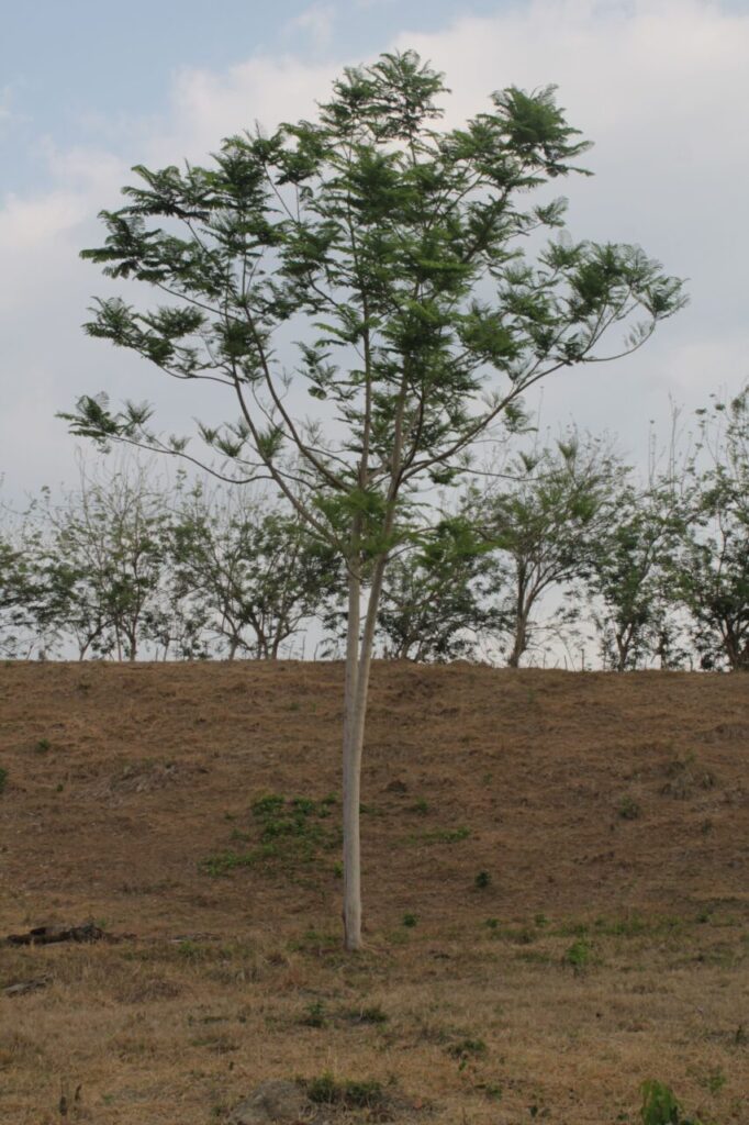 Propiedades foliares: Presentan hojas bipinnadas, de 30–50 cm en adultos, con 7–11 pares de pinnas y numerosos folíolos, concentradas en la copa, dando aspecto de helecho arborescente.